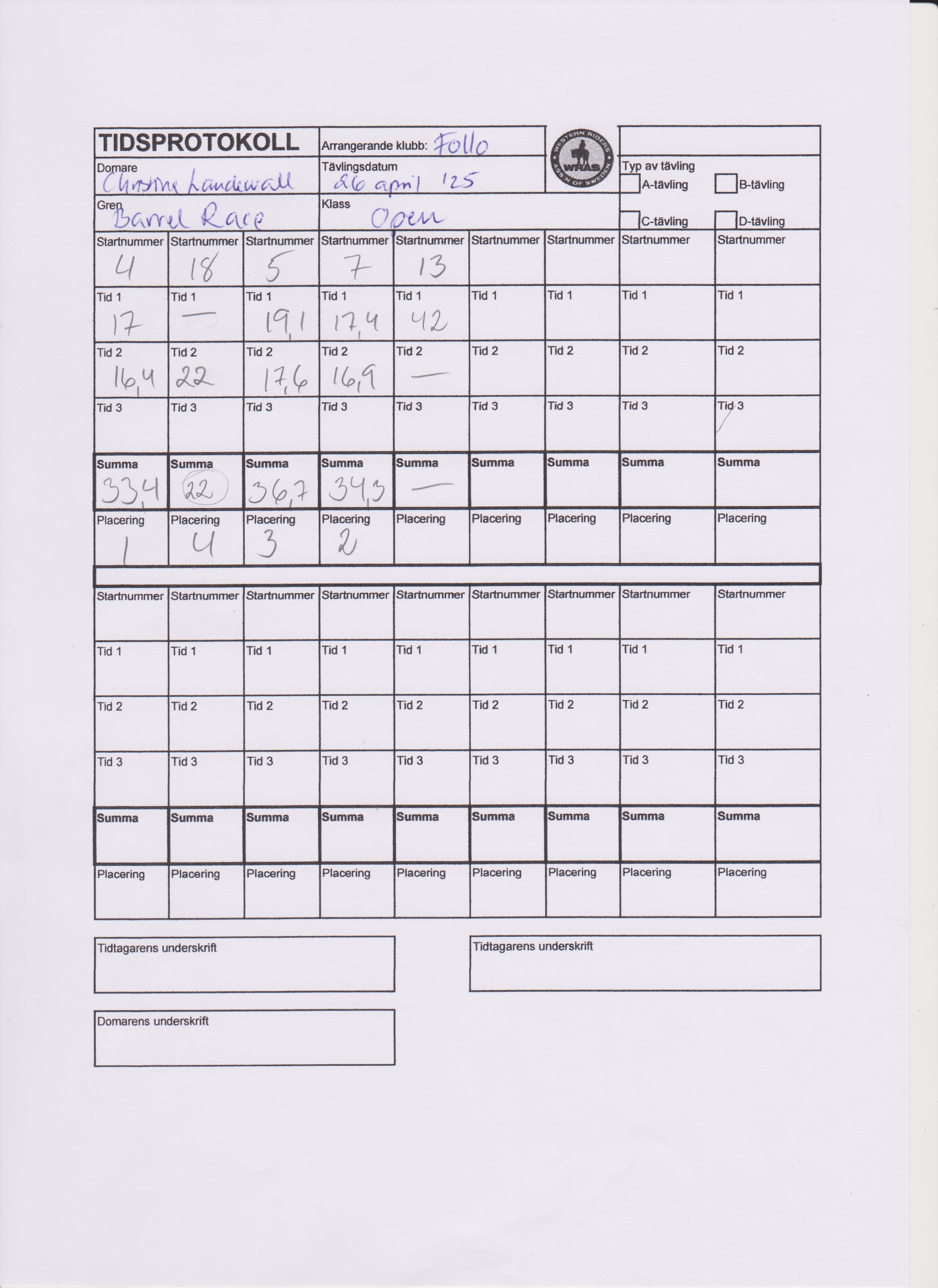 | 4 | 18 | Wass Crown Jewel | Vilster Maria | 00:22:00 | Valid place |